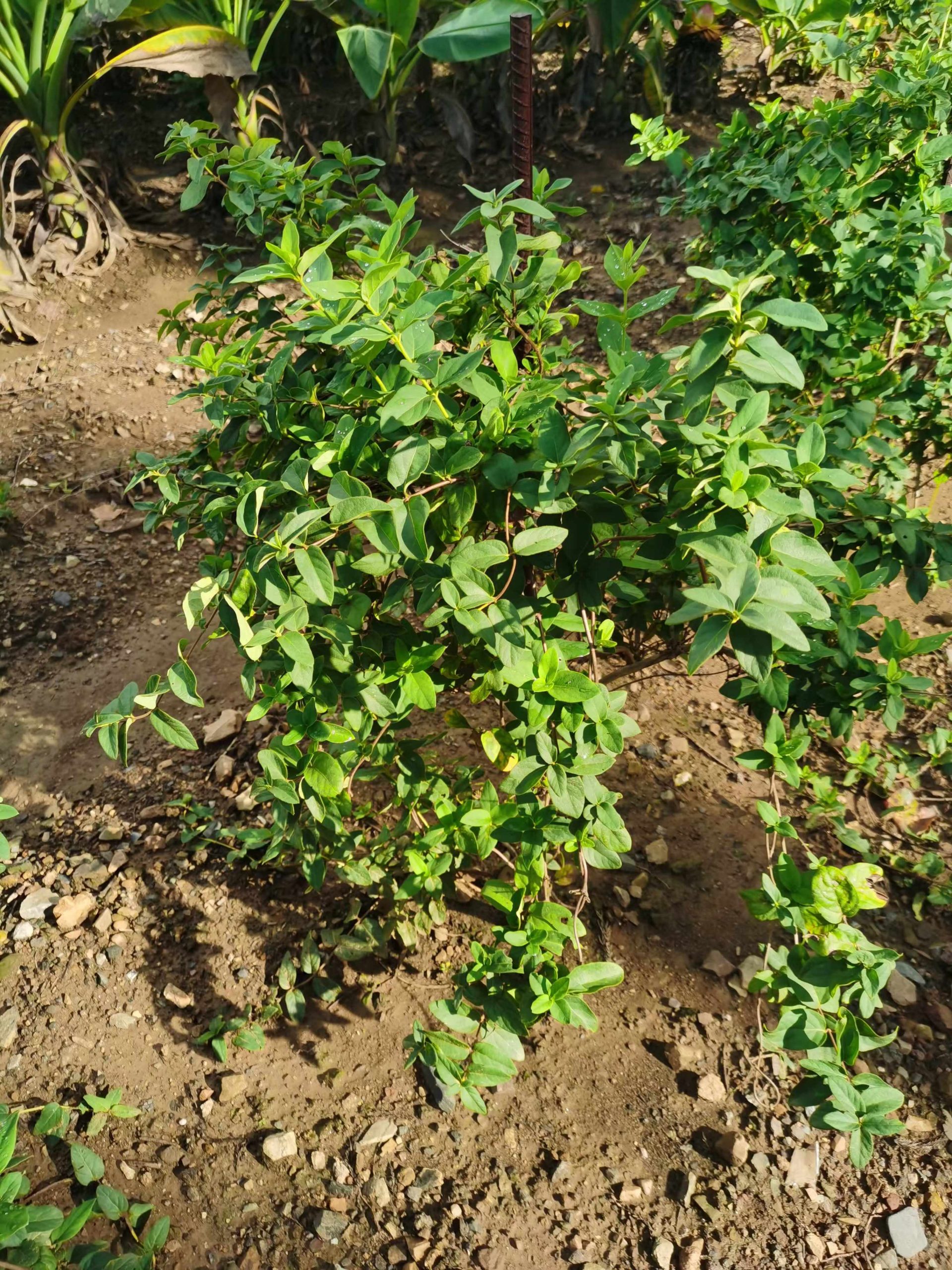 金银花喜阳,地上茎较耐热,地下茎耐寒性强。因此种植于土壤湿润、向阳的地块,搭制攀爬架。